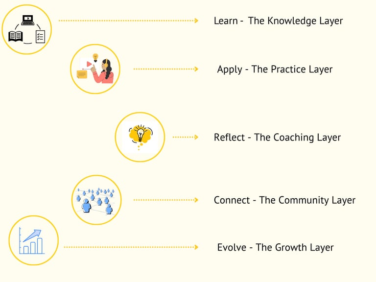 Peer-learning circles and discussion forums that foster collaboration and accountability.