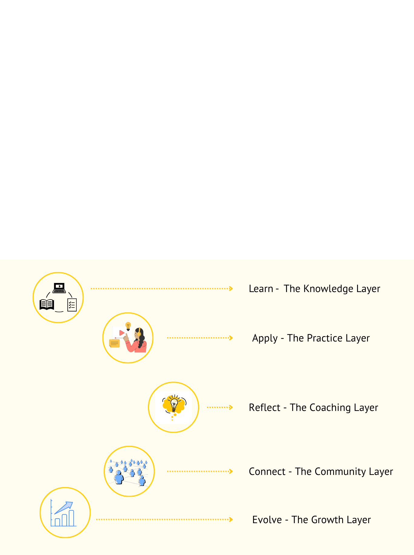 Peer-learning circles and discussion forums that foster collaboration and accountability.
